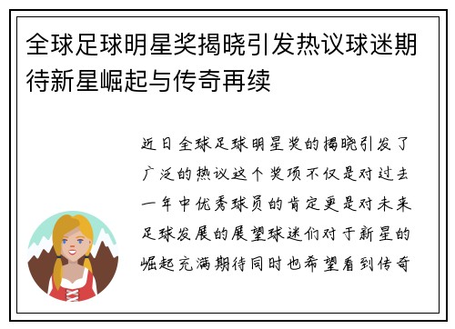 本文旨在回顾和分析零几年的足球明星及其对全球足球文化的影响力。零几年的时间段是足球历史上一个充满激情与变革的阶段,一些球员不仅在场上展现了卓越的技术与领导才能,更通过个人魅力和社会责任感影响了无数球迷和年轻一代。在这篇文章中,我们将从四个方面进行探讨:首先,关注当时最具代表性的足球明星,包括贝克汉姆、罗纳尔多和梅西等人;其次,分析他们在商业价值上的巨大潜力;然后,探讨这些明星如何推动全球化进程;最...