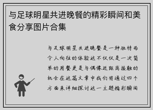 在现代足球世界中,球场上的明星们不仅以其超凡的技艺吸引着众多粉丝,他们的爱情故事同样令人着迷。本文将围绕“足球明星们的爱情故事揭秘寻找女朋友的精彩视频合集”这一主题,深入探讨四个主要方面:爱情故事的重要性、明星们如何找到理想伴侣、他们与伴侣之间的互动,以及这些故事对球迷的影响。通过这些方面,我们可以更全面地了解足球明星们在生活中的另一面,以及他们如何平衡职业与个人感情。在这个过程中,我们将揭示许多...