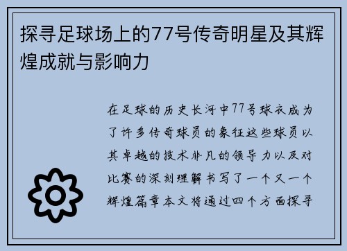 这篇文章旨在探讨足球明星的故乡之旅,揭示他们成就背后的故事与文化根源。通过对这些球员出生地和成长环境的考察,我们不仅能够理解他们成功的背景,还能深入挖掘那些影响他们职业生涯的重要因素。文章将从四个方面进行详细阐述:首先,故乡对明星球员的影响;其次,文化传统如何塑造球员性格;第三,社区支持的重要性;最后,坚韧精神与奋斗历程。这些元素共同构成了足球明星们辉煌成就背后的深厚底蕴,也使得他们成为社会文化的...